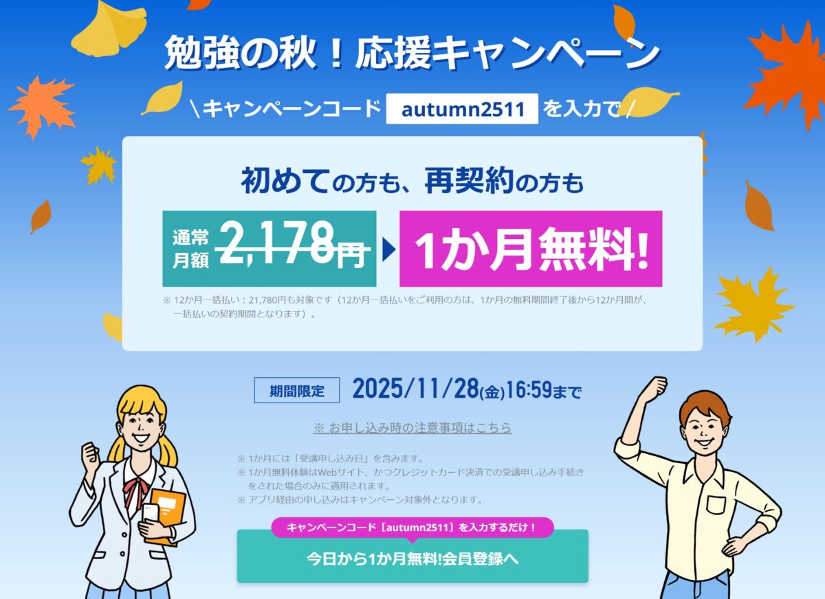 スタディサプリでは、「勉強の秋!応援キャンペーン」を実施中!