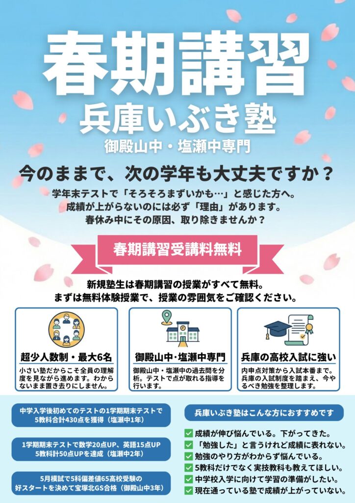 兵庫いぶき塾は、兵庫県公立高校入試に強い学習塾です。