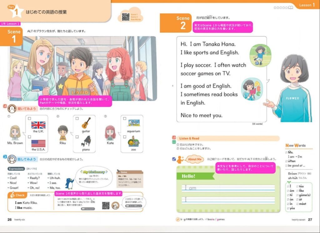 実際、今の教科書では、中1の最初(Lesson1・Part1)から次の内容が出てきます。