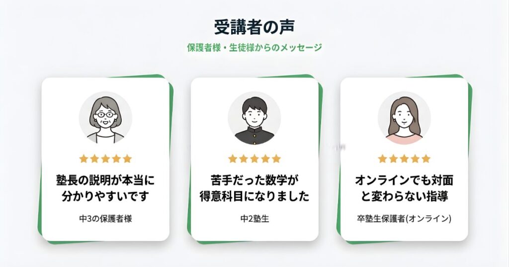 「塾長の説明が本当に分かりやすいです」(中学3年生 保護者様)