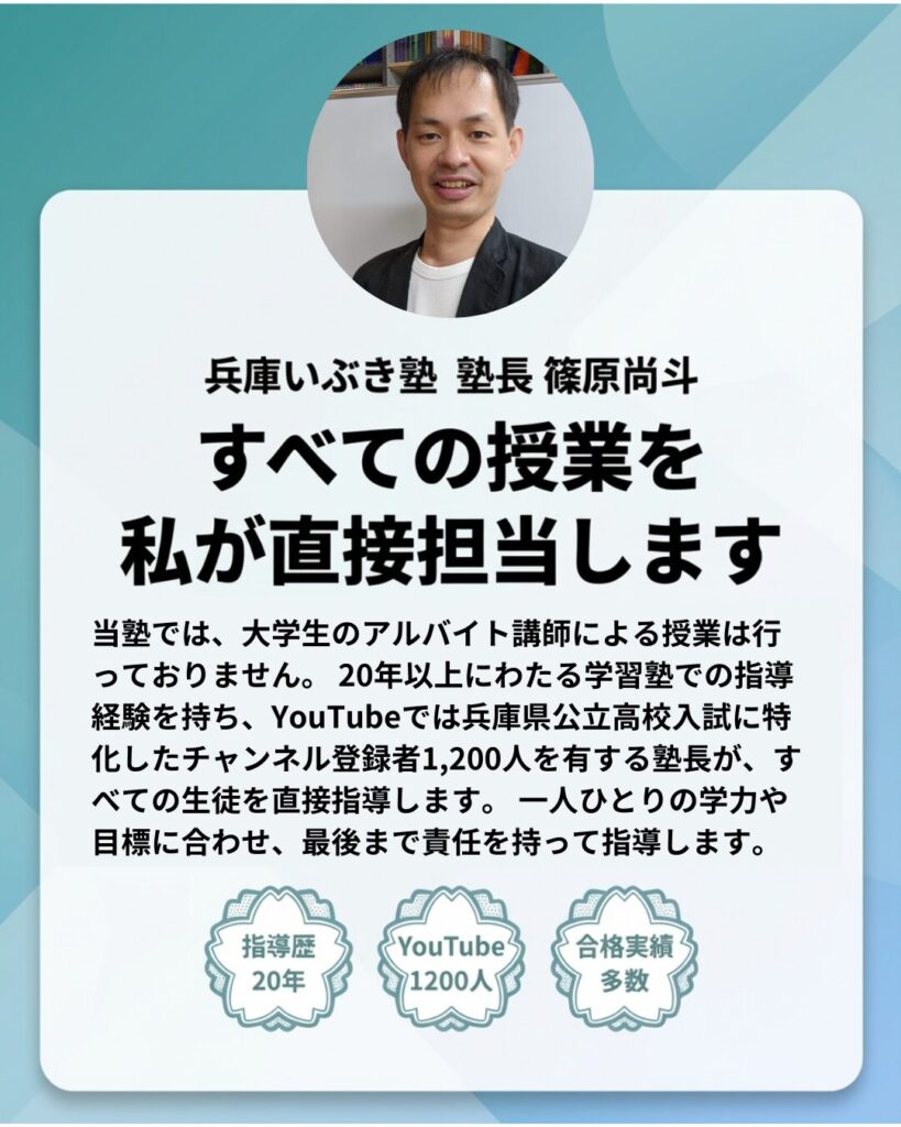 すべての授業を兵庫いぶき塾塾長の篠原が直接担当します。