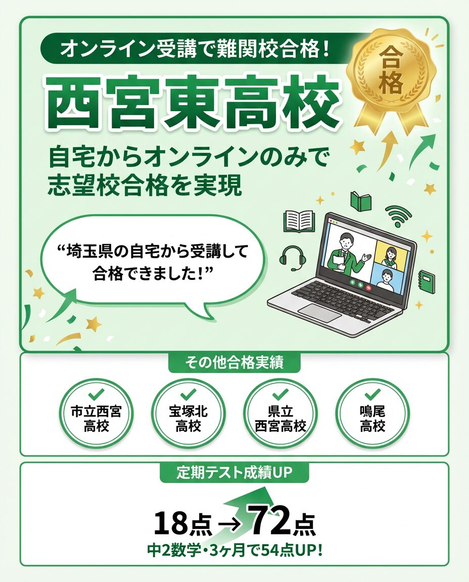 埼玉県の自宅から、オンライン受講のみで西宮東高校合格を決めた生徒
