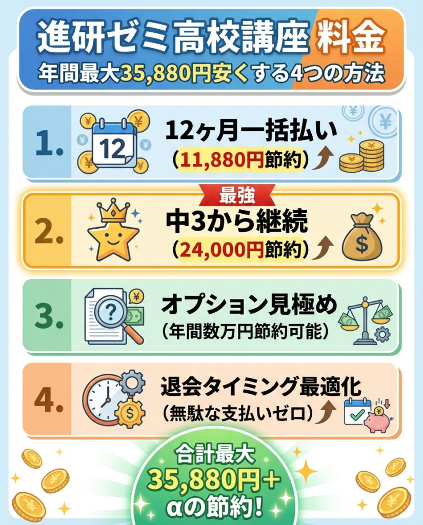 - 中3から継続: 年間で24,000円節約(最強の組み合わせ)