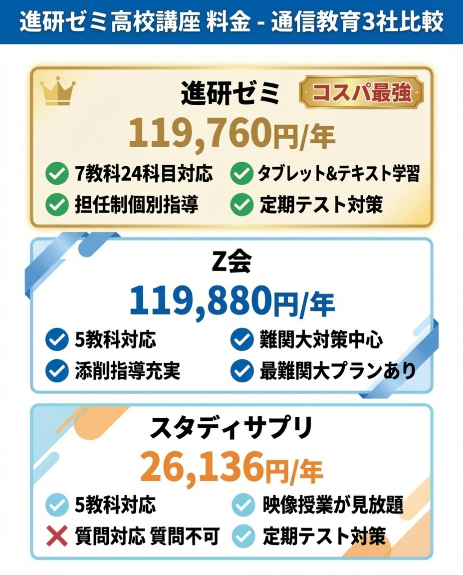 進研ゼミ高校講座を主要な通信教育サービスと比較してみました。